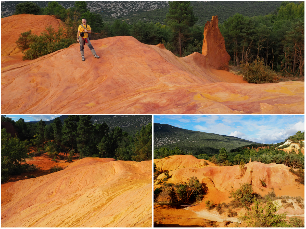 Colorado Provençal (o Colorado de Rustrel). Es un gran afloramiento al aire libre de ocre donde se puede observar todas sus variantes, desde el rojo al blanco. Para contemplarlo en todo su esplendor hay que completar una sencilla